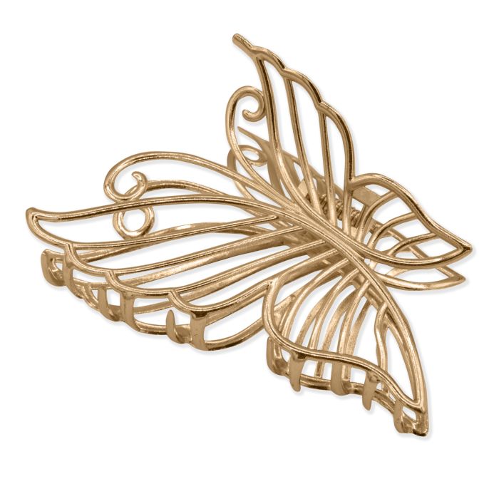 Un solo accessorio diventerà la star del vostro look. Questo fermaglio a farfalla XL in oro con bellissime ali fustellate non lascerà nessuno indifferente.