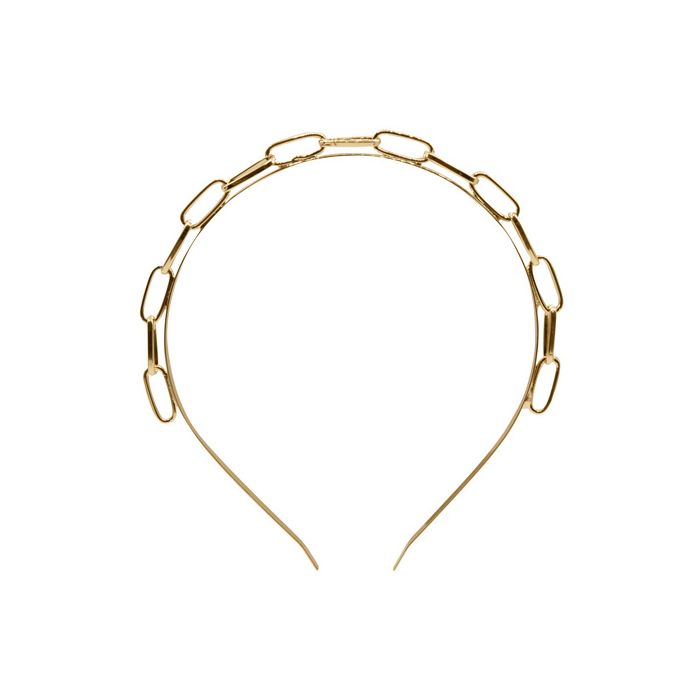 Questo delicato cerchietto con dettagli a catena attorno alla struttura è ideale sia per raccogliere i capelli che per decorarli. Aggiungilo alla tua collezione di accessori e dai un tocco di stile ai tuoi look.