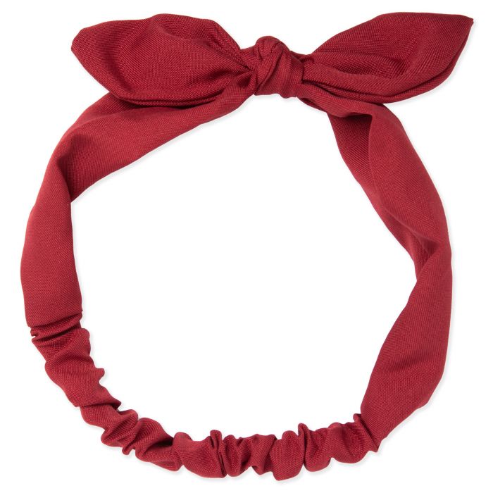 Fascia per capelli o fascia per capelli in viscosa con doppia fodera elasticizzata per una vestibilità regolabile e fiocco decorativo.