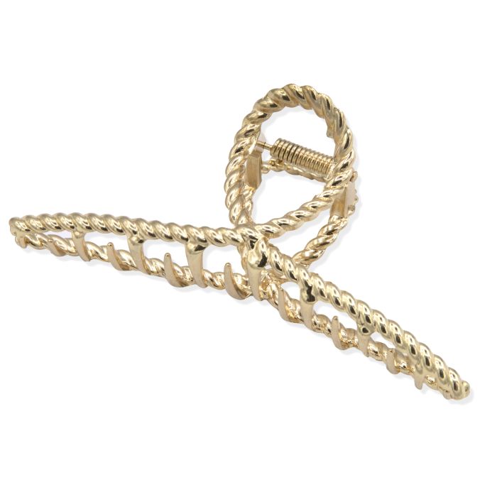 Unisciti alla tendenza con questo elegante fermaglio con fiocco intrecciato dorato che completerà qualsiasi look.