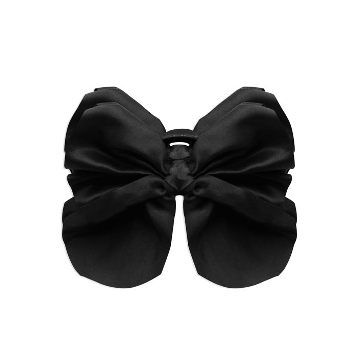 Fermaglio per capelli con fiocco in tessuto incorporato, ideale per trattenere anche le chiome più voluminose in acconciature raccolte e semi raccolte.