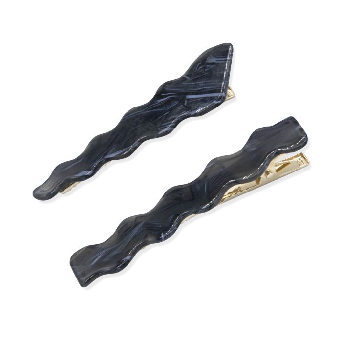 Le clips sono le regine dello street style. Un must per ogni acconciatura. Con questo set di due clip dalla forma originale con effetto marmo potrai abbinarle sia ai capelli sciolti che alle acconciature.