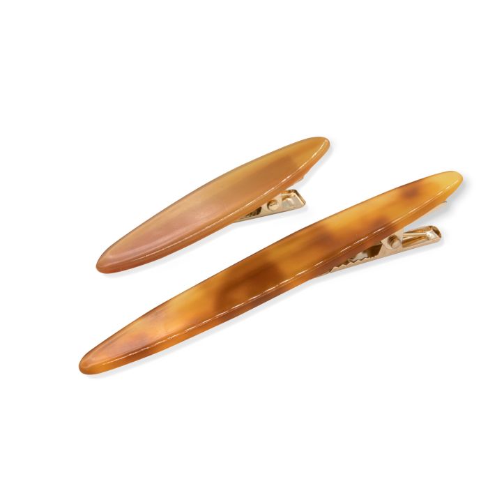 I fermagli sono la regina dello street style. Un must per ogni acconciatura. Con questo set di due mollette color caramello potrete abbinarle sia ai capelli sciolti che agli updos.
