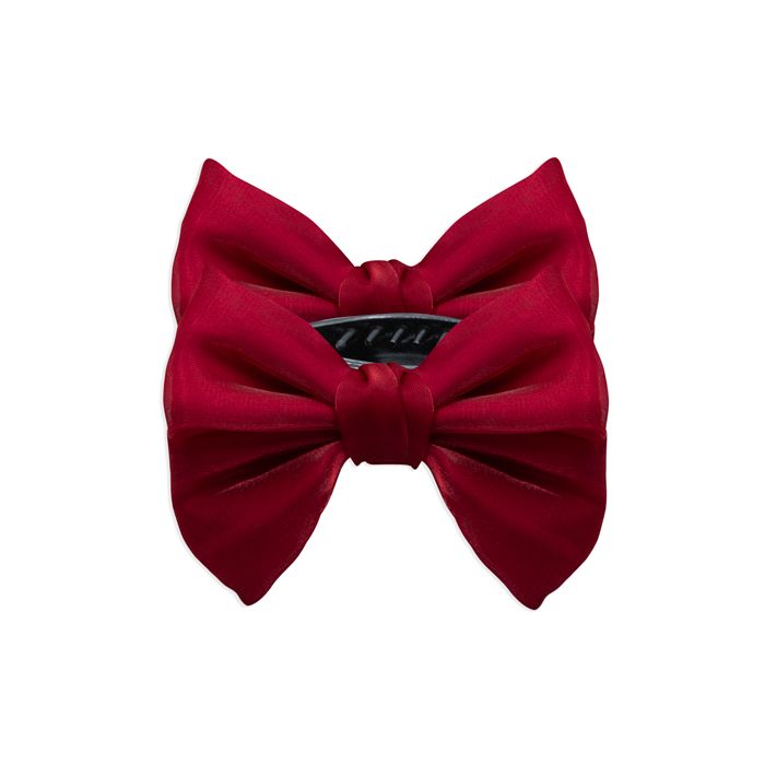 Fermaglio per capelli con un fiocco in tessuto incorporato, ideale per trattenere anche le chiome più voluminose in acconciature raccolte e semi raccolte.