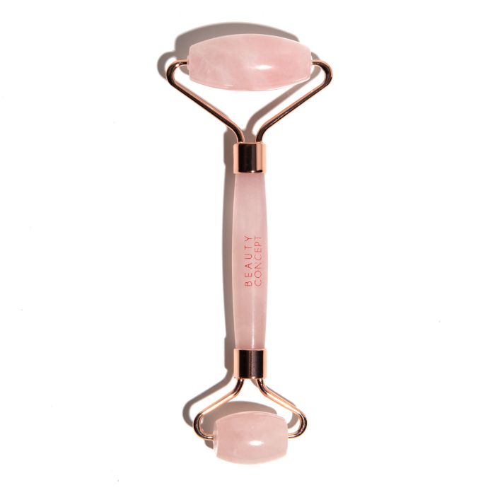 • Quarzo rosa: questo rullo contiene una vera pietra di quarzo rosa. Le proprietà del quarzo rosa aiutano a restituire luminosità ed energia alle pelli stressate e alleviano la tensione aiutando a ridurre la pelle opaca, le linee sottili di espressione e persino l’acne.